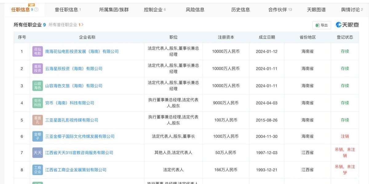 通过天眼查官网显示,郑某峰旗下总共有9家公司,其中4家已经不复存在了,其余的一家被发现有税收违法的记录,也就是说好几个月内都未曾申报过纳税。